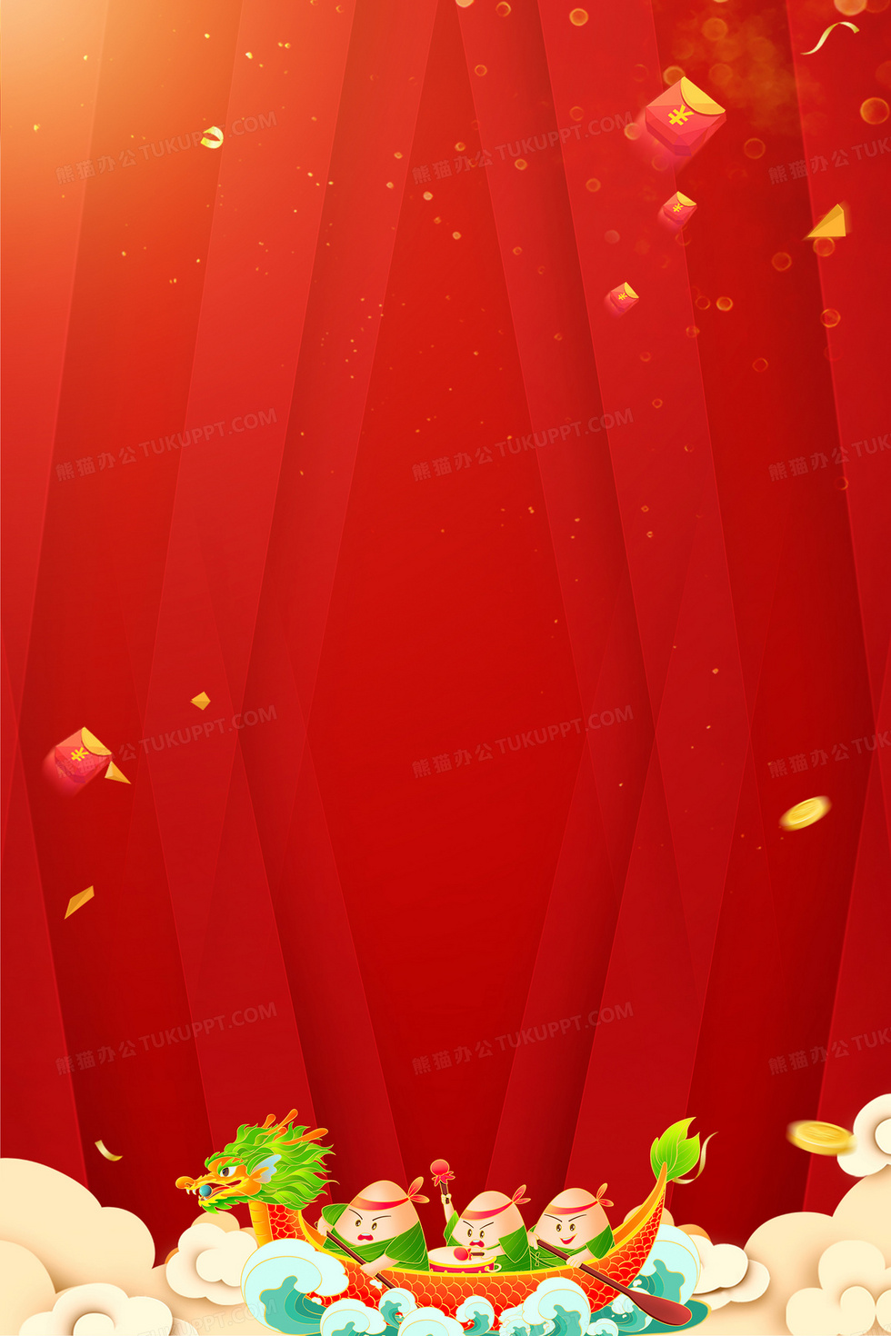 本作品内容为红色端午节节日庆典喜庆背景, 格式为 psd, 大小32 MB, 图片尺寸为3543 x 5315, 作品中背景图片无需修改, 源文件无水印,可以直接使用, 欢迎使用熊猫办公。 如认为平台内容涉嫌侵权,可通过邮件:tousu@tukuppt.com提出书面通知,我们将及时处理。