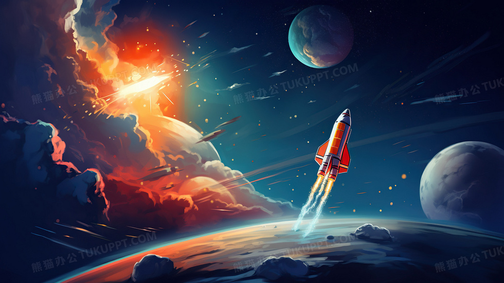 本作品内容为外太空宇宙星球梦幻唯美航天插画, 格式为 jpg, 大小5 MB, 图片尺寸为2912 x 1632, 源文件无水印, 欢迎使用熊猫办公。 如认为平台内容涉嫌侵权,可通过邮件:tousu@tukuppt.com提出书面通知,我们将及时处理。