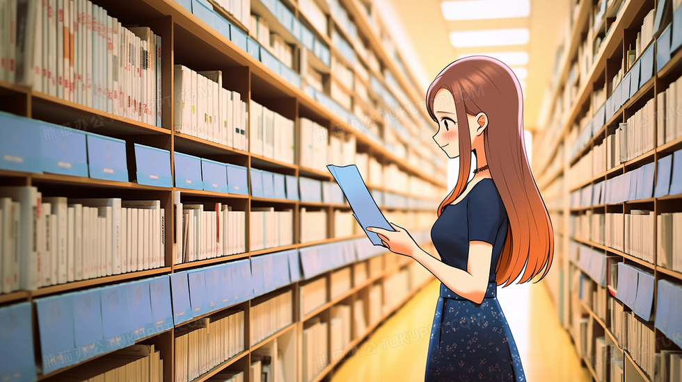 本作品内容为在图书室书架前看书的女生插画, 格式为 jpg, 大小3 MB, 图片尺寸为2912 x 1632, 源文件无水印, 欢迎使用熊猫办公。 如认为平台内容涉嫌侵权,可通过邮件:tousu@tukuppt.com提出书面通知,我们将及时处理。