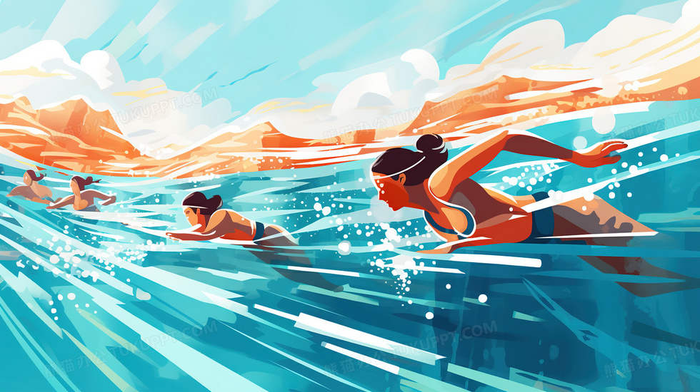 本作品内容为手绘游泳比赛中的女运动员插画, 格式为 jpg, 大小5 MB, 图片尺寸为2912 x 1632, 源文件无水印, 欢迎使用熊猫办公。 如认为平台内容涉嫌侵权,可通过邮件:tousu@tukuppt.com提出书面通知,我们将及时处理。