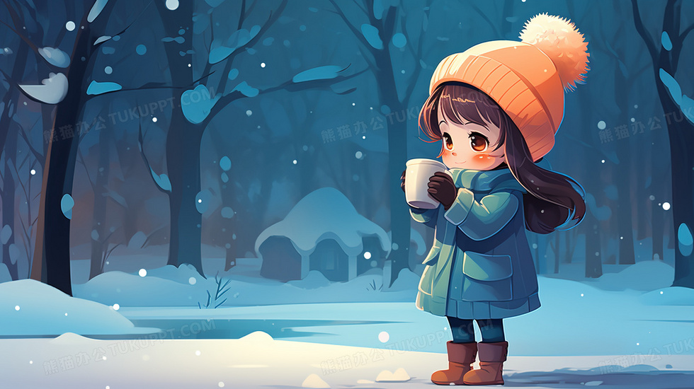 本作品内容为卡通少女在雨雪中喝热饮插画, 格式为 jpg, 大小4 MB, 图片尺寸为2912 x 1632, 源文件无水印, 欢迎使用熊猫办公。 如认为平台内容涉嫌侵权,可通过邮件:tousu@tukuppt.com提出书面通知,我们将及时处理。