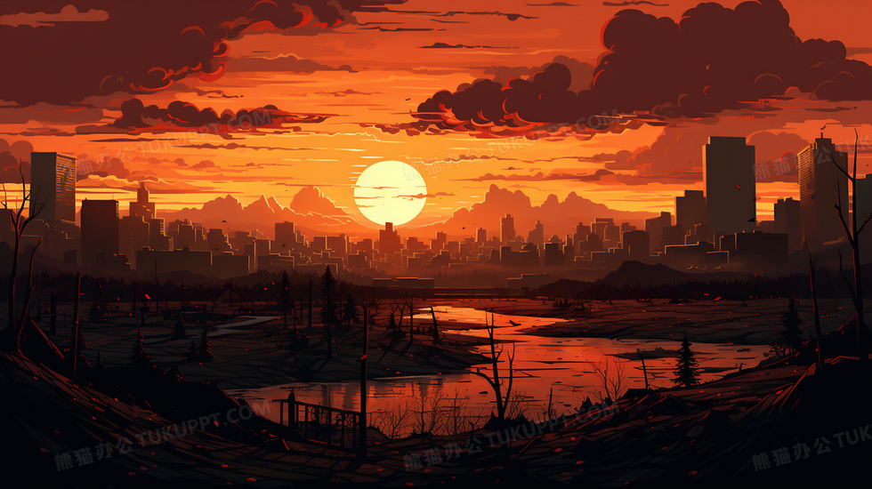 本作品内容为唯美城市夕阳落日风景插画, 格式为 jpg, 大小6 MB, 图片尺寸为2912 x 1632, 源文件无水印, 欢迎使用熊猫办公。 如认为平台内容涉嫌侵权,可通过邮件:tousu@tukuppt.com提出书面通知,我们将及时处理。