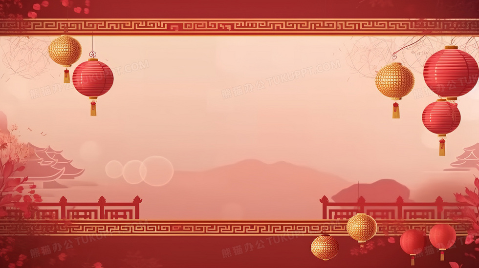 本作品内容为迎春节红色古建筑灯笼展示框插画, 格式为 jpg, 大小5 MB, 图片尺寸为2912 x 1632, 源文件无水印, 欢迎使用熊猫办公。 如认为平台内容涉嫌侵权,可通过邮件:tousu@tukuppt.com提出书面通知,我们将及时处理。