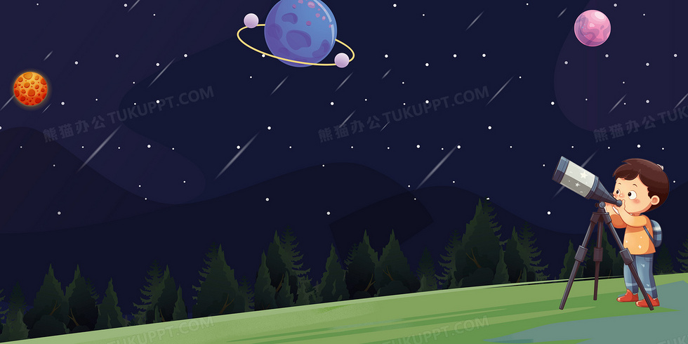 本作品内容为卡通儿童观察星空背景, 格式为 psd, 大小33 MB, 图片尺寸为4724 x 2362, 作品中背景图片无需修改, 源文件无水印,可以直接使用, 欢迎使用熊猫办公。 如认为平台内容涉嫌侵权,可通过邮件:tousu@tukuppt.com提出书面通知,我们将及时处理。