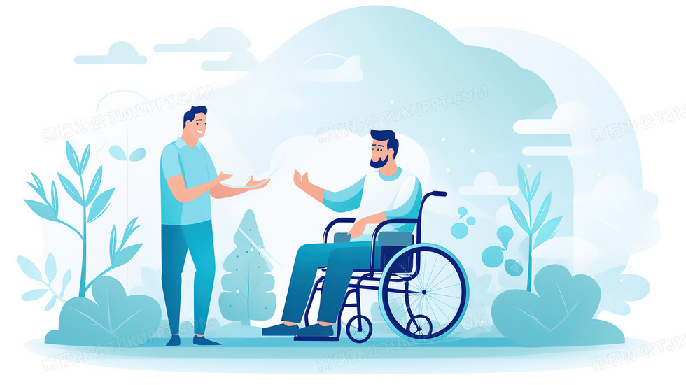 本作品内容为医生照顾残疾人人物插画, 格式为 jpg, 大小4 MB, 图片尺寸为2912 x 1632, 源文件无水印, 欢迎使用熊猫办公。 如认为平台内容涉嫌侵权,可通过邮件:tousu@tukuppt.com提出书面通知,我们将及时处理。
