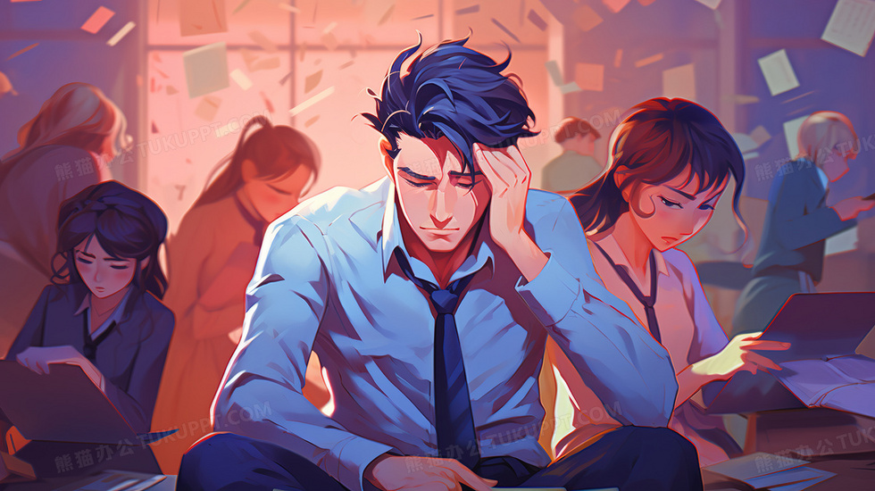 本作品内容为压力很大的职场人士插画, 格式为 jpg, 大小5 MB, 图片尺寸为2912 x 1632, 源文件无水印, 欢迎使用熊猫办公。 如认为平台内容涉嫌侵权,可通过邮件:tousu@tukuppt.com提出书面通知,我们将及时处理。