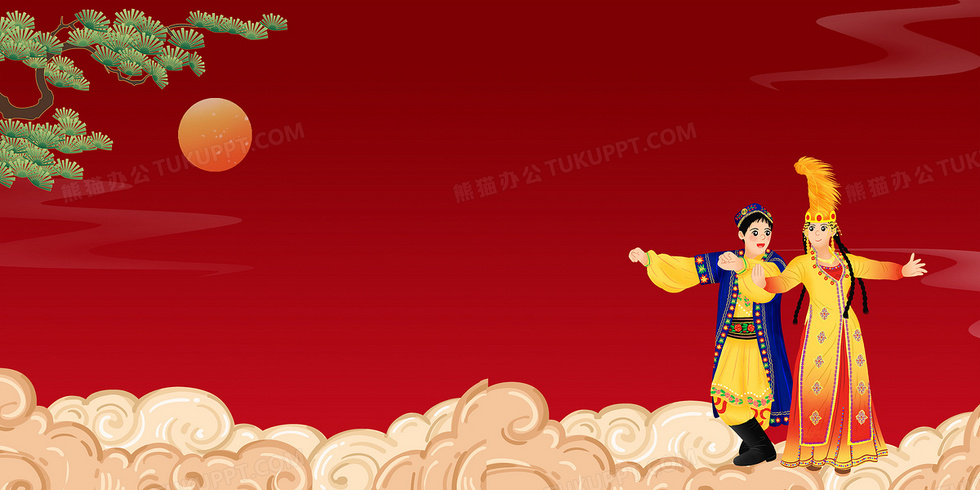 本作品内容为中国风国潮民族舞卡通背景, 格式为 psd, 大小52 MB, 图片尺寸为4722 x 2361, 作品中背景图片无需修改, 源文件无水印,可以直接使用, 欢迎使用熊猫办公。 如认为平台内容涉嫌侵权,可通过邮件:tousu@tukuppt.com提出书面通知,我们将及时处理。