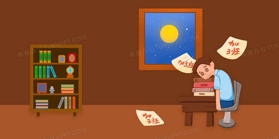 本作品内容为棕色简约卡通熬夜背景, 格式为 psd, 大小5 MB, 图片尺寸为4724 x 2362, 作品中背景图片无需修改, 源文件无水印,可以直接使用, 欢迎使用熊猫办公。 如认为平台内容涉嫌侵权,可通过邮件:tousu@tukuppt.com提出书面通知,我们将及时处理。