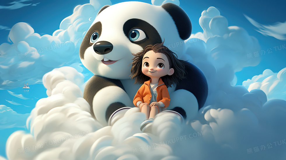 本作品内容为可爱大熊猫抱着小女孩坐在云团上插画, 格式为 jpg, 大小6 MB, 图片尺寸为2912 x 1632, 源文件无水印, 欢迎使用熊猫办公。 如认为平台内容涉嫌侵权,可通过邮件:tousu@tukuppt.com提出书面通知,我们将及时处理。