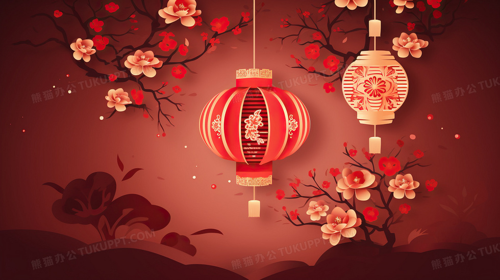 本作品内容为2024新年龙年喜庆国潮风过年灯笼插画, 格式为 jpg, 大小5 MB, 图片尺寸为2912 x 1632, 源文件无水印, 欢迎使用熊猫办公。 如认为平台内容涉嫌侵权,可通过邮件:tousu@tukuppt.com提出书面通知,我们将及时处理。