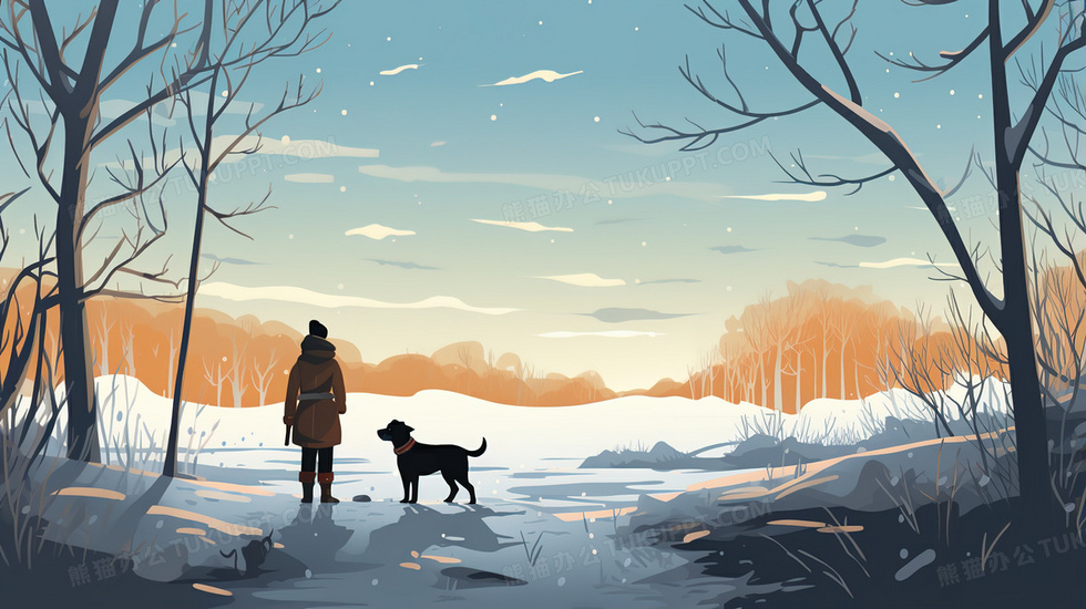 本作品内容为雪原上的狗子与主人插画, 格式为 jpg, 大小5 MB, 图片尺寸为2912 x 1632, 源文件无水印, 欢迎使用熊猫办公。 如认为平台内容涉嫌侵权,可通过邮件:tousu@tukuppt.com提出书面通知,我们将及时处理。
