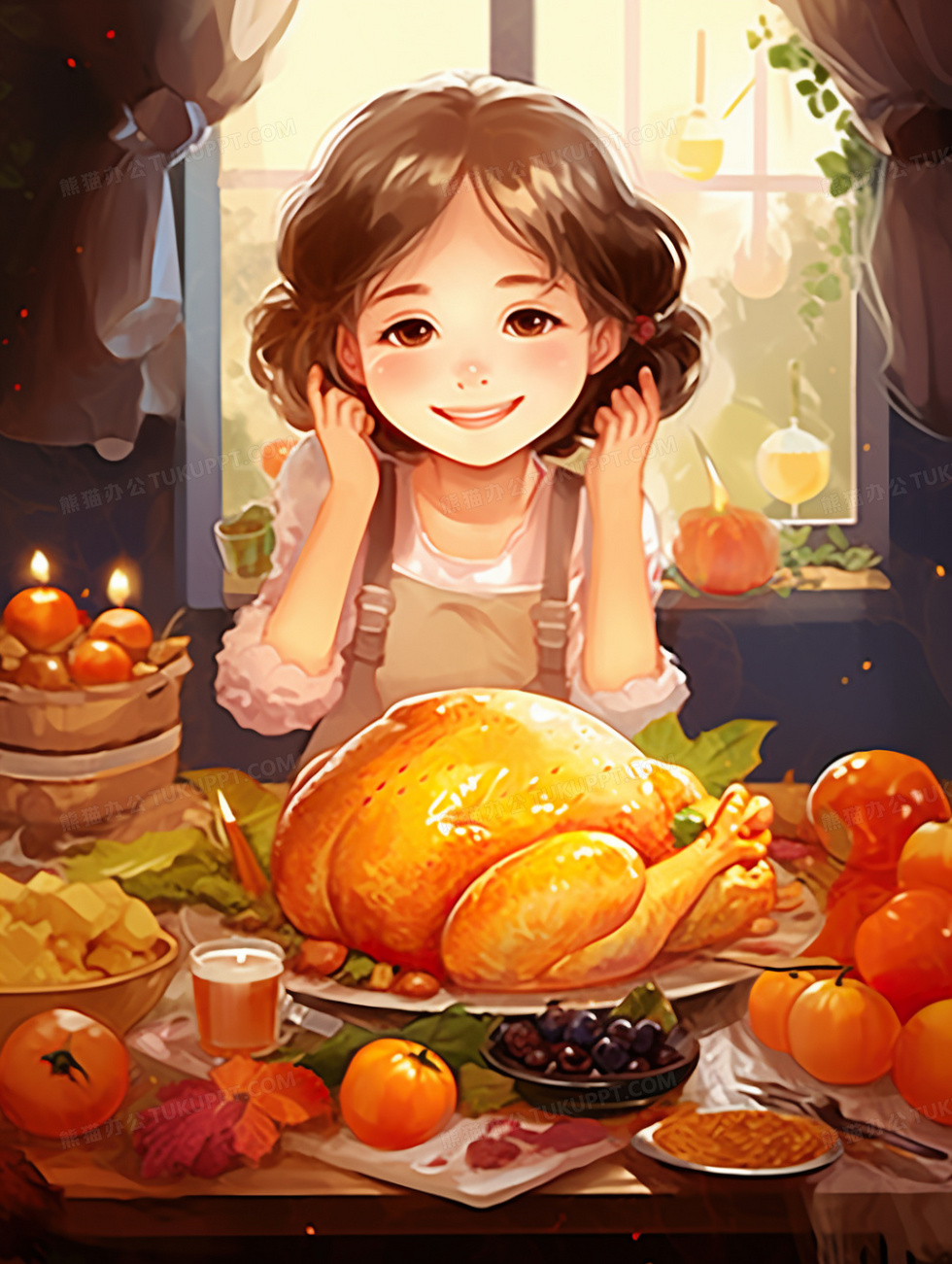 本作品内容为感恩节女孩烤鸡美食插画, 格式为 jpg, 大小5 MB, 图片尺寸为1760 x 2336, 源文件无水印, 欢迎使用熊猫办公。 如认为平台内容涉嫌侵权,可通过邮件:tousu@tukuppt.com提出书面通知,我们将及时处理。