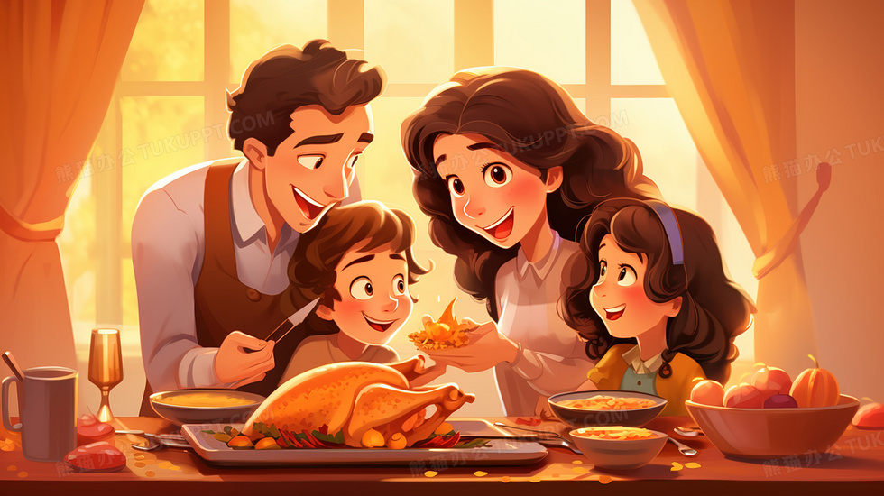 本作品内容为感恩节家庭晚餐聚会卡通插画, 格式为 jpg, 大小4 MB, 图片尺寸为2912 x 1632, 源文件无水印, 欢迎使用熊猫办公。 如认为平台内容涉嫌侵权,可通过邮件:tousu@tukuppt.com提出书面通知,我们将及时处理。