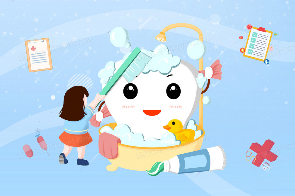本作品内容为牙齿健康爱牙日刷牙宣传插画, 格式为 psd, 大小9 MB, 请使用软件PhotoShop(CS6)打开, 源文件无水印, 欢迎使用熊猫办公。 如认为平台内容涉嫌侵权,可通过邮件:tousu@tukuppt.com提出书面通知,我们将及时处理。