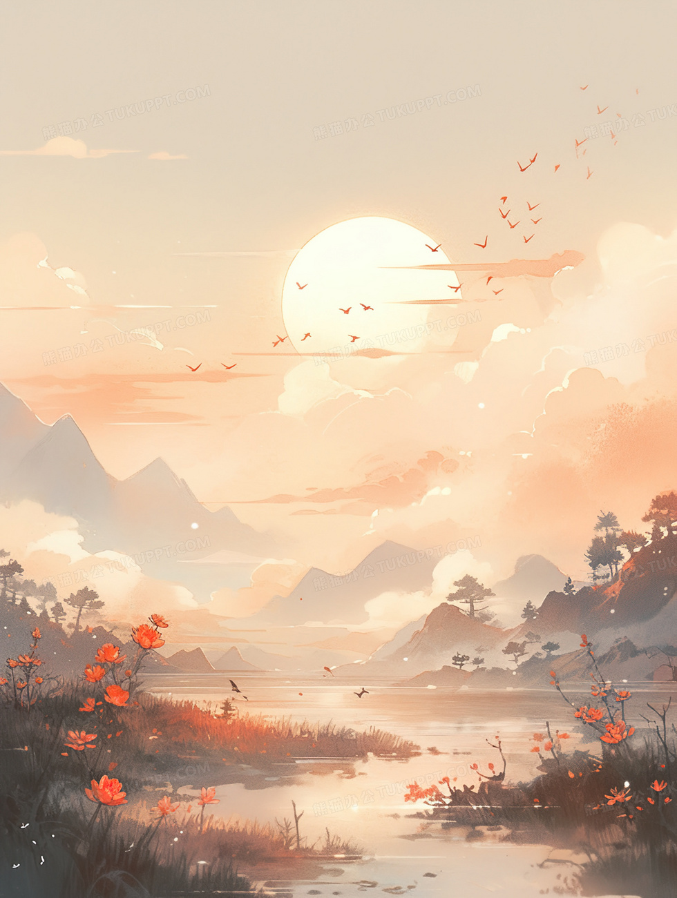 本作品内容为中国风水墨山水风景意境插画, 格式为 jpg, 大小5 MB, 图片尺寸为1856 x 2464, 源文件无水印, 欢迎使用熊猫办公。 如认为平台内容涉嫌侵权,可通过邮件:tousu@tukuppt.com提出书面通知,我们将及时处理。