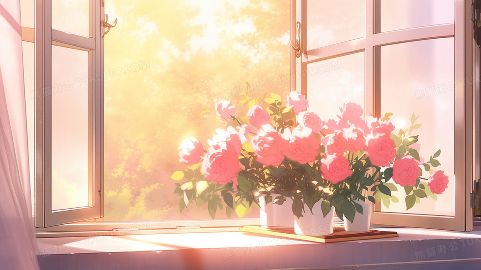 本作品内容为窗户外阳光下的春日美景插画, 格式为 jpg, 大小3 MB, 图片尺寸为2912 x 1632, 源文件无水印, 欢迎使用熊猫办公。 如认为平台内容涉嫌侵权,可通过邮件:tousu@tukuppt.com提出书面通知,我们将及时处理。