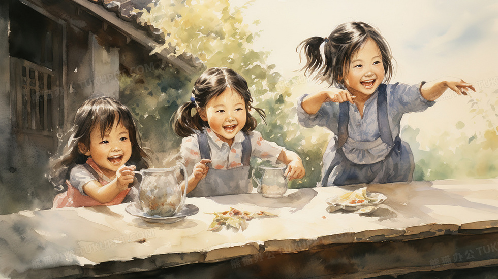 本作品内容为乡村儿童玩耍的孩子插画, 格式为 jpg, 大小3 MB, 图片尺寸为2912 x 1632, 源文件无水印, 欢迎使用熊猫办公。 如认为平台内容涉嫌侵权,可通过邮件:tousu@tukuppt.com提出书面通知,我们将及时处理。