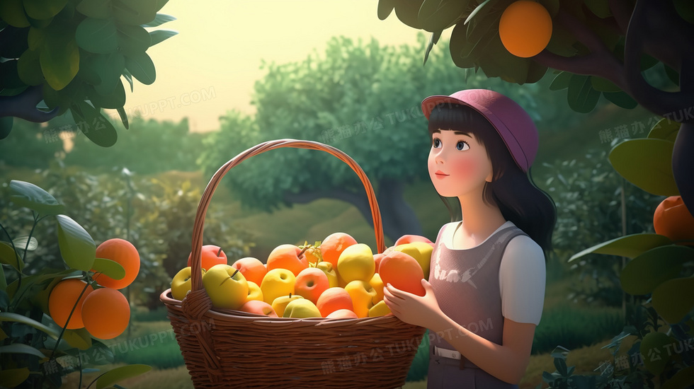 本作品内容为卡通摘水果的小女孩人物插画, 格式为 jpg, 大小4 MB, 图片尺寸为2912 x 1632, 源文件无水印, 欢迎使用熊猫办公。 如认为平台内容涉嫌侵权,可通过邮件:tousu@tukuppt.com提出书面通知,我们将及时处理。