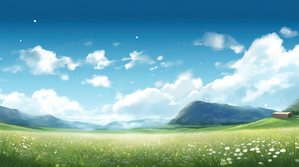 本作品内容为唯美蓝天白云下的草地花瓣风景插画, 格式为 jpg, 大小6 MB, 图片尺寸为2912 x 1632, 源文件无水印, 欢迎使用熊猫办公。 如认为平台内容涉嫌侵权,可通过邮件:tousu@tukuppt.com提出书面通知,我们将及时处理。