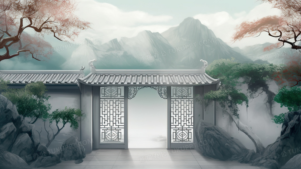 本作品内容为中国风唯美庭院插画, 格式为 jpg, 大小6 MB, 图片尺寸为2912 x 1632, 源文件无水印, 欢迎使用熊猫办公。 如认为平台内容涉嫌侵权,可通过邮件:tousu@tukuppt.com提出书面通知,我们将及时处理。