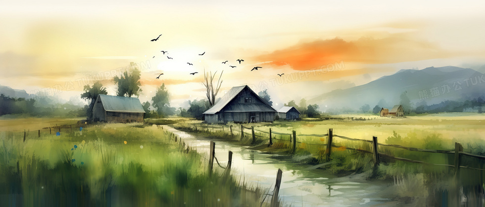 本作品内容为水彩风郊外农庄风景创意插画, 格式为 jpg, 大小6 MB, 图片尺寸为3360 x 1440, 源文件无水印, 欢迎使用熊猫办公。 如认为平台内容涉嫌侵权,可通过邮件:tousu@tukuppt.com提出书面通知,我们将及时处理。