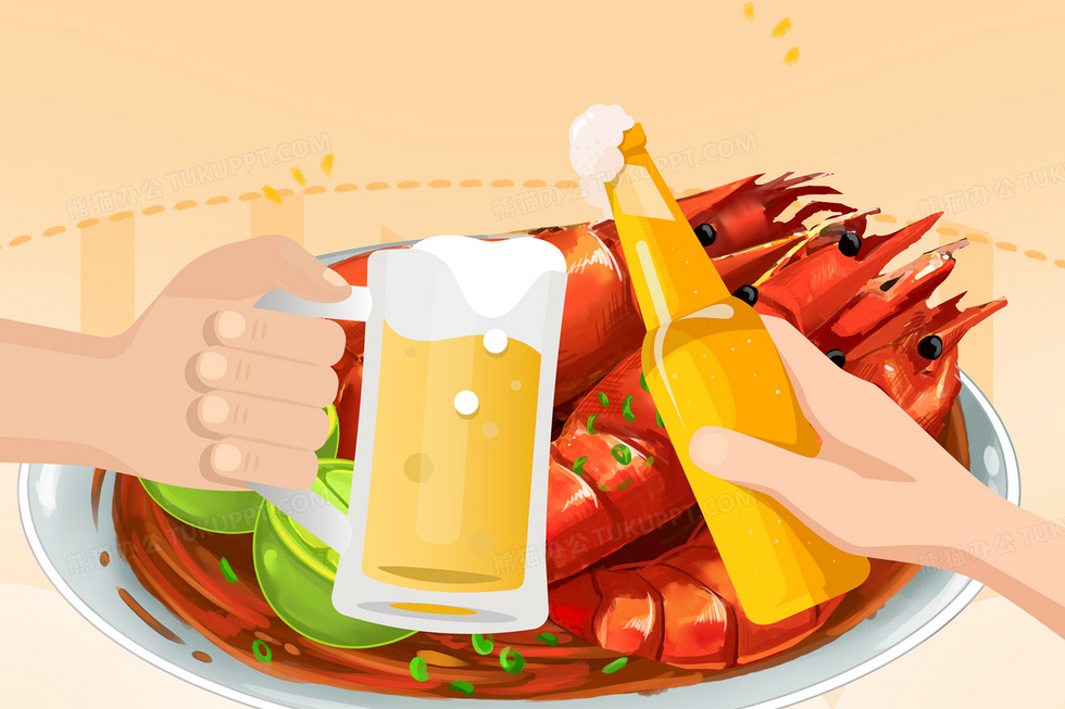 本作品内容为卡通小龙虾啤酒餐饮吃饭插画, 格式为 psd, 大小17 MB, 请使用软件PhotoShop(CS6)打开, 源文件无水印, 欢迎使用熊猫办公。 如认为平台内容涉嫌侵权,可通过邮件:tousu@tukuppt.com提出书面通知,我们将及时处理。