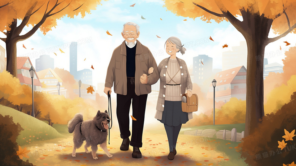 本作品内容为一对老夫妇带着小狗在公园里散心插画, 格式为 jpg, 大小3 MB, 图片尺寸为2912 x 1632, 源文件无水印, 欢迎使用熊猫办公。 如认为平台内容涉嫌侵权,可通过邮件:tousu@tukuppt.com提出书面通知,我们将及时处理。