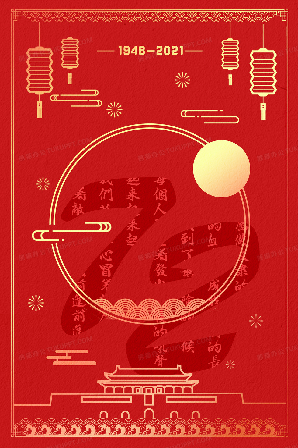 本作品内容为红金简约线条天安门国庆节72周年党建背景, 格式为 psd, 大小79 MB, 图片尺寸为3543 x 5315, 作品中背景图片无需修改, 源文件无水印,可以直接使用, 欢迎使用熊猫办公。 如认为平台内容涉嫌侵权,可通过邮件:tousu@tukuppt.com提出书面通知,我们将及时处理。