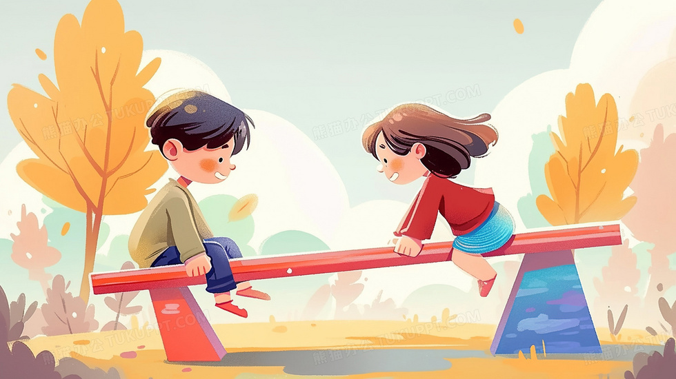 本作品内容为公园草地玩跷跷板的男孩女孩插画, 格式为 jpg, 大小2 MB, 图片尺寸为2912 x 1632, 源文件无水印, 欢迎使用熊猫办公。 如认为平台内容涉嫌侵权,可通过邮件:tousu@tukuppt.com提出书面通知,我们将及时处理。