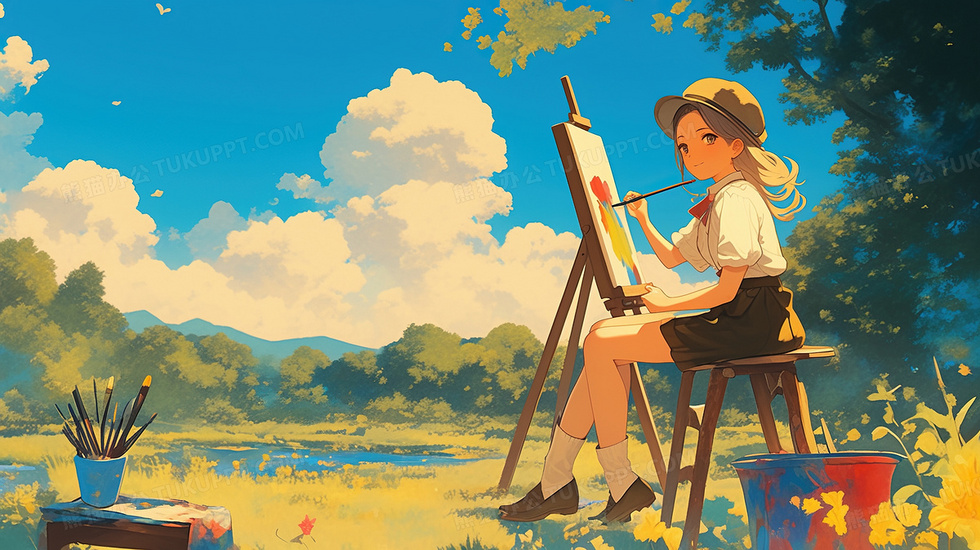 本作品内容为女孩画画绘画美术艺术插画, 格式为 jpg, 大小3 MB, 图片尺寸为2912 x 1632, 源文件无水印, 欢迎使用熊猫办公。 如认为平台内容涉嫌侵权,可通过邮件:tousu@tukuppt.com提出书面通知,我们将及时处理。