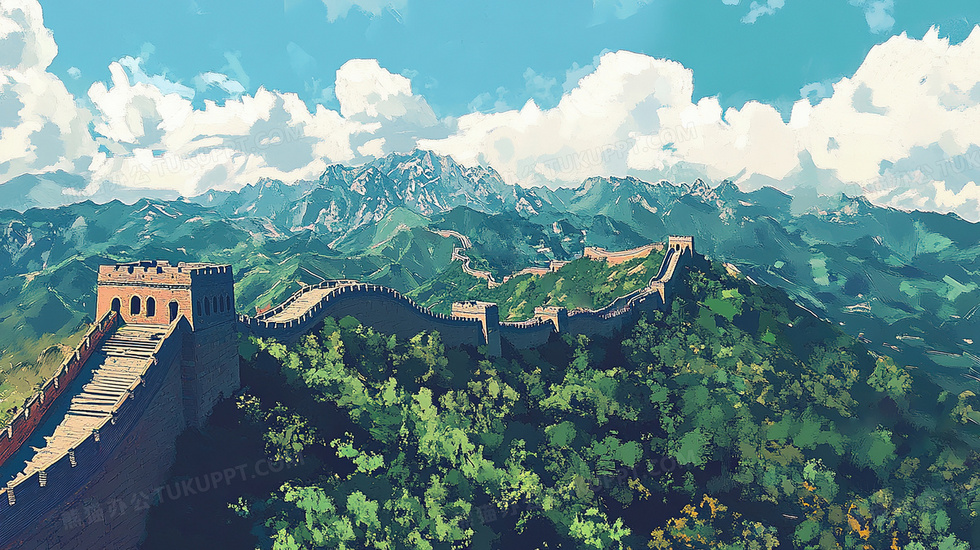 本作品内容为中国名胜古迹长城插画, 格式为 jpg, 大小5 MB, 图片尺寸为2912 x 1632, 源文件无水印, 欢迎使用熊猫办公。 如认为平台内容涉嫌侵权,可通过邮件:tousu@tukuppt.com提出书面通知,我们将及时处理。