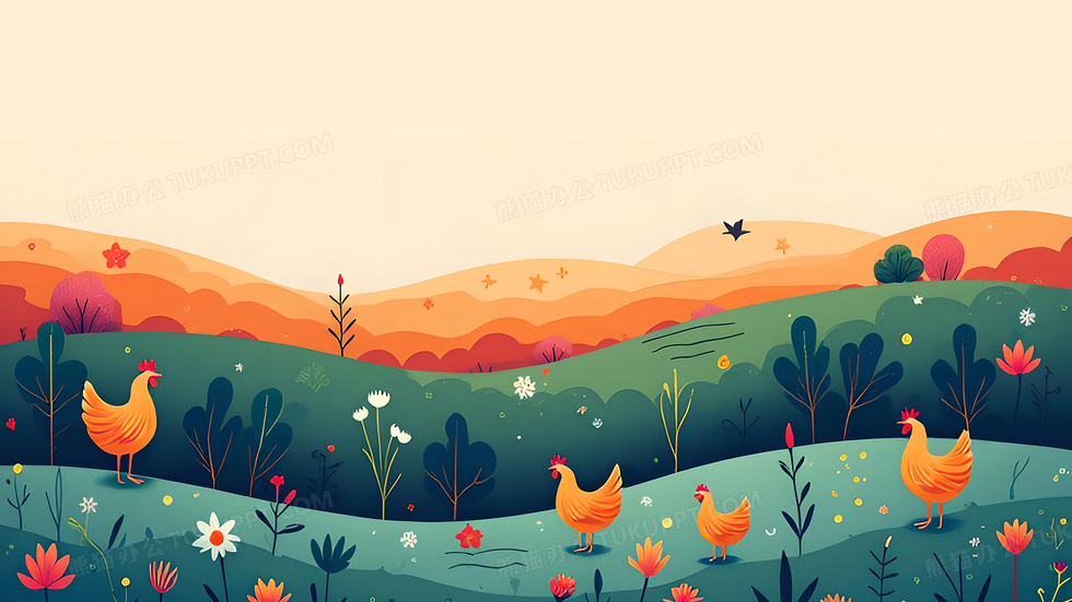 本作品内容为平面农场家禽鸡群背景图, 格式为 jpg, 大小4 MB, 图片尺寸为3072 x 1728, 作品中背景图片无需修改, 源文件无水印,可以直接使用, 欢迎使用熊猫办公。 如认为平台内容涉嫌侵权,可通过邮件:tousu@tukuppt.com提出书面通知,我们将及时处理。