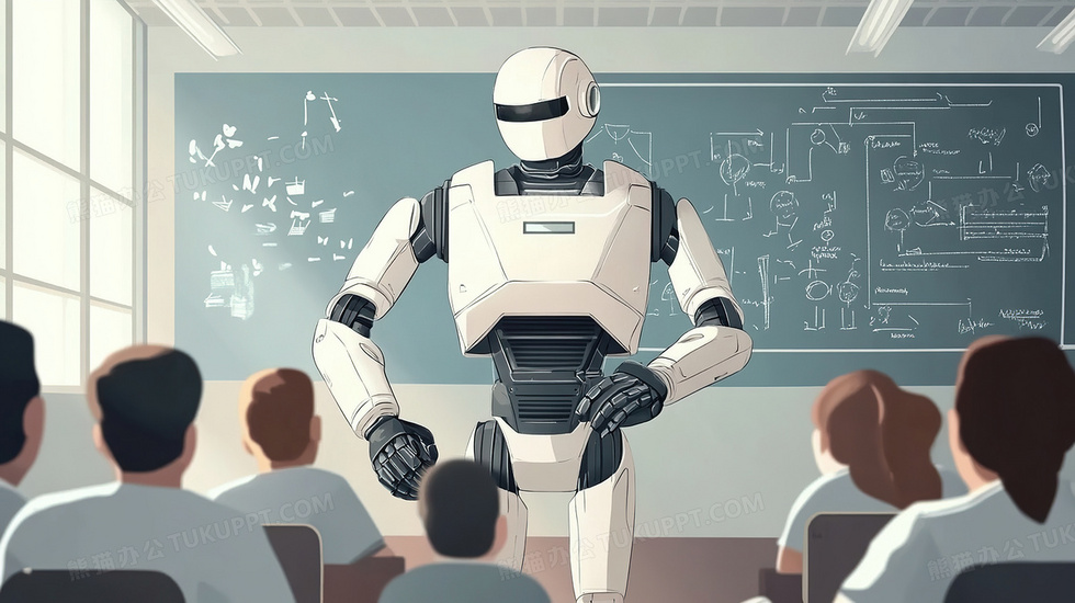 本作品内容为机器人在课堂上教学插画, 格式为 jpg, 大小3 MB, 图片尺寸为2912 x 1632, 源文件无水印, 欢迎使用熊猫办公。 如认为平台内容涉嫌侵权,可通过邮件:tousu@tukuppt.com提出书面通知,我们将及时处理。