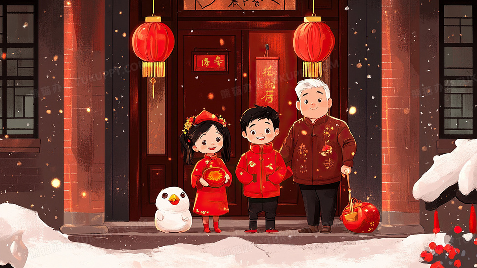 本作品内容为红色喜庆春节过年走亲戚的一家人插画, 格式为 jpg, 大小3 MB, 图片尺寸为2912 x 1632, 源文件无水印, 欢迎使用熊猫办公。 如认为平台内容涉嫌侵权,可通过邮件:tousu@tukuppt.com提出书面通知,我们将及时处理。