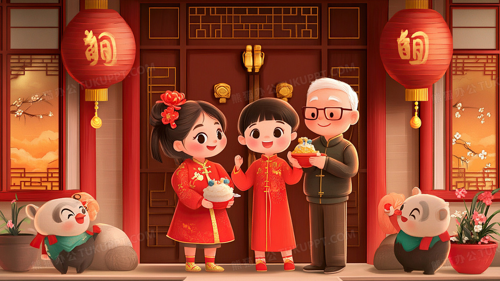 本作品内容为红色喜庆春节过年拜年走亲戚插画, 格式为 jpg, 大小4 MB, 图片尺寸为2912 x 1632, 源文件无水印, 欢迎使用熊猫办公。 如认为平台内容涉嫌侵权,可通过邮件:tousu@tukuppt.com提出书面通知,我们将及时处理。