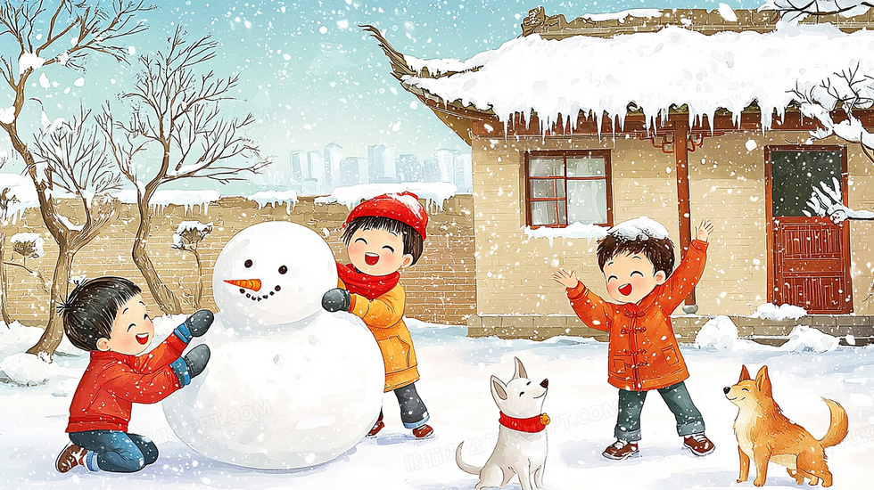 本作品内容为冬季开心堆雪人的小朋友个宠物狗插画, 格式为 jpg, 大小4 MB, 图片尺寸为2912 x 1632, 源文件无水印, 欢迎使用熊猫办公。 如认为平台内容涉嫌侵权,可通过邮件:tousu@tukuppt.com提出书面通知,我们将及时处理。