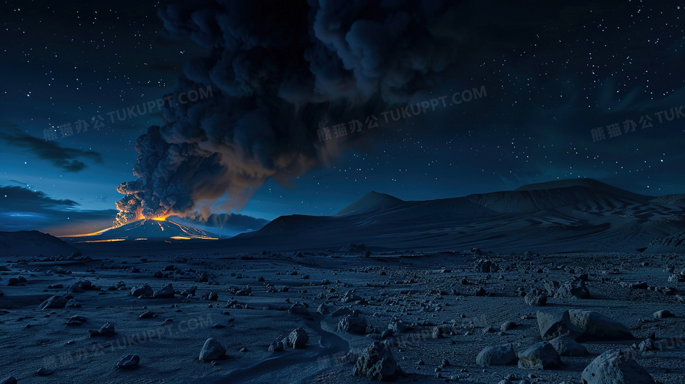 本作品内容为夜间火山下的戈壁滩背景, 格式为 jpg, 大小3 MB, 图片尺寸为2912 x 1632, 作品中背景图片无需修改, 源文件无水印,可以直接使用, 欢迎使用熊猫办公。 如认为平台内容涉嫌侵权,可通过邮件:tousu@tukuppt.com提出书面通知,我们将及时处理。