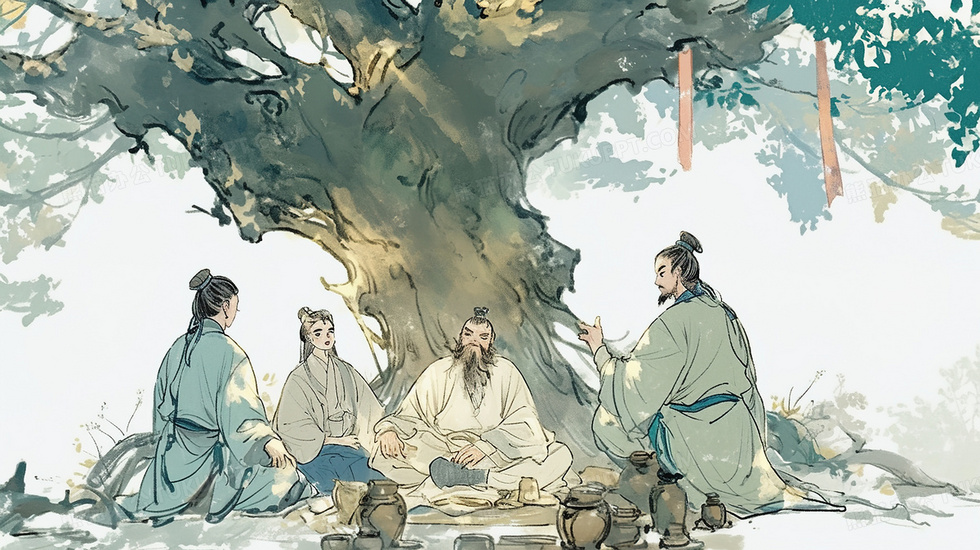 本作品内容为树下喝酒聊天的古代人物插画, 格式为 jpg, 大小3 MB, 图片尺寸为2912 x 1632, 源文件无水印, 欢迎使用熊猫办公。 如认为平台内容涉嫌侵权,可通过邮件:tousu@tukuppt.com提出书面通知,我们将及时处理。