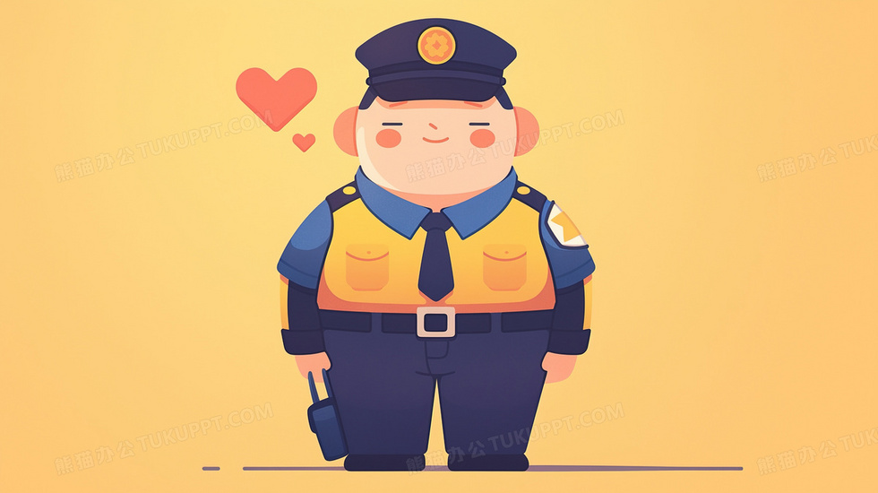 本作品内容为卡通爱心警察背景, 格式为 jpg, 大小2 MB, 图片尺寸为2912 x 1632, 作品中背景图片无需修改, 源文件无水印,可以直接使用, 欢迎使用熊猫办公。 如认为平台内容涉嫌侵权,可通过邮件:tousu@tukuppt.com提出书面通知,我们将及时处理。