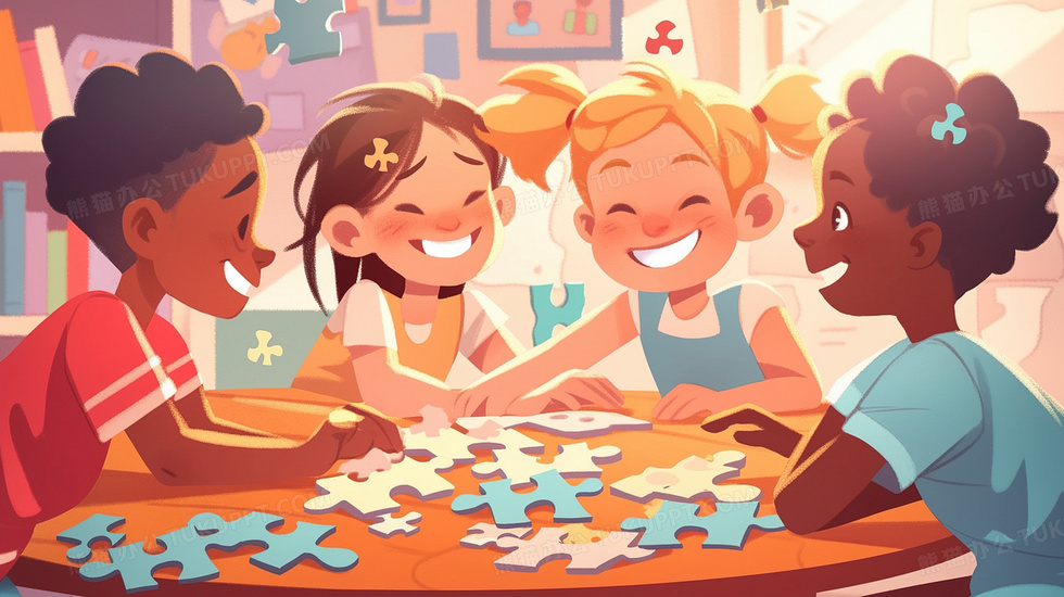 本作品内容为小朋友一起桌面玩拼图插画, 格式为 jpg, 大小3 MB, 图片尺寸为2912 x 1632, 源文件无水印, 欢迎使用熊猫办公。 如认为平台内容涉嫌侵权,可通过邮件:tousu@tukuppt.com提出书面通知,我们将及时处理。