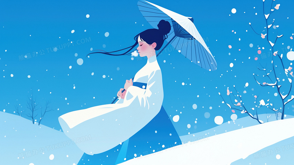 本作品内容为蓝色冬季下雪撑伞的古风女子插画, 格式为 jpg, 大小2 MB, 图片尺寸为2912 x 1632, 源文件无水印, 欢迎使用熊猫办公。 如认为平台内容涉嫌侵权,可通过邮件:tousu@tukuppt.com提出书面通知,我们将及时处理。