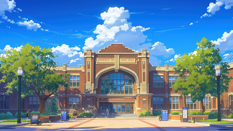 本作品内容为蓝天白云校园教学楼风景插画, 格式为 jpg, 大小3 MB, 图片尺寸为2912 x 1632, 源文件无水印, 欢迎使用熊猫办公。 如认为平台内容涉嫌侵权,可通过邮件:tousu@tukuppt.com提出书面通知,我们将及时处理。