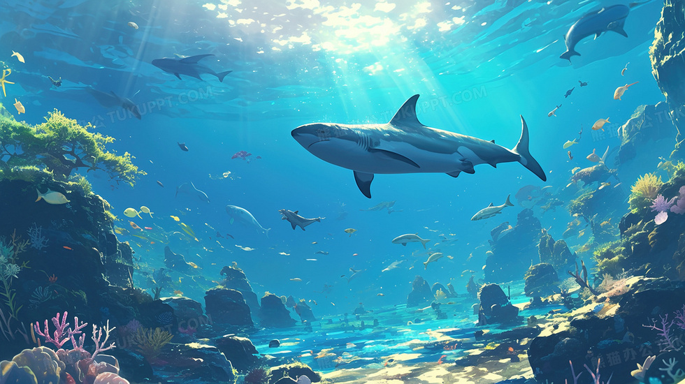 本作品内容为蓝色海洋生物鲨鱼插画, 格式为 jpg, 大小3 MB, 图片尺寸为2912 x 1632, 源文件无水印, 欢迎使用熊猫办公。 如认为平台内容涉嫌侵权,可通过邮件:tousu@tukuppt.com提出书面通知,我们将及时处理。