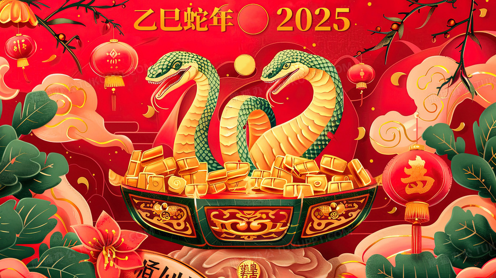 本作品内容为卡通蛇年聚宝盆与蛇创意插画, 格式为 jpg, 大小4 MB, 图片尺寸为2912 x 1632, 源文件无水印, 欢迎使用熊猫办公。 如认为平台内容涉嫌侵权,可通过邮件:tousu@tukuppt.com提出书面通知,我们将及时处理。