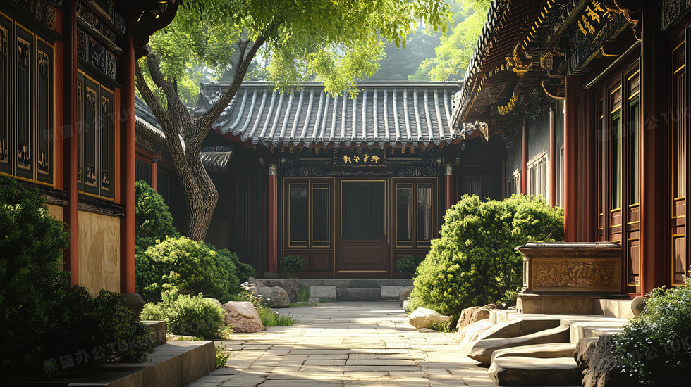 本作品内容为中国风中式庭院建筑景观插画, 格式为 jpg, 大小4 MB, 图片尺寸为2912 x 1632, 源文件无水印, 欢迎使用熊猫办公。 如认为平台内容涉嫌侵权,可通过邮件:tousu@tukuppt.com提出书面通知,我们将及时处理。
