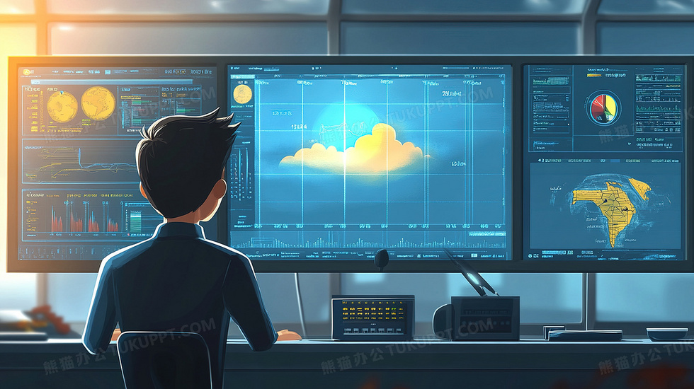 本作品内容为天气预报控制中心天气信息插画, 格式为 jpg, 大小3 MB, 图片尺寸为2912 x 1632, 源文件无水印, 欢迎使用熊猫办公。 如认为平台内容涉嫌侵权,可通过邮件:tousu@tukuppt.com提出书面通知,我们将及时处理。