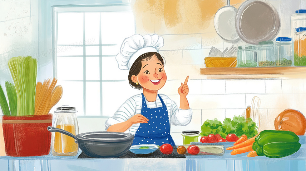 本作品内容为卡通美女女性职业厨师大厨插画, 格式为 jpg, 大小3 MB, 图片尺寸为2912 x 1632, 源文件无水印, 欢迎使用熊猫办公。 如认为平台内容涉嫌侵权,可通过邮件:tousu@tukuppt.com提出书面通知,我们将及时处理。