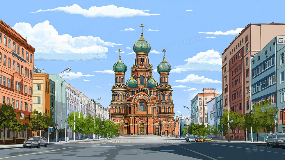 本作品内容为哈尔滨索菲亚教堂插画, 格式为 jpg, 大小4 MB, 图片尺寸为2912 x 1632, 源文件无水印, 欢迎使用熊猫办公。 如认为平台内容涉嫌侵权,可通过邮件:tousu@tukuppt.com提出书面通知,我们将及时处理。