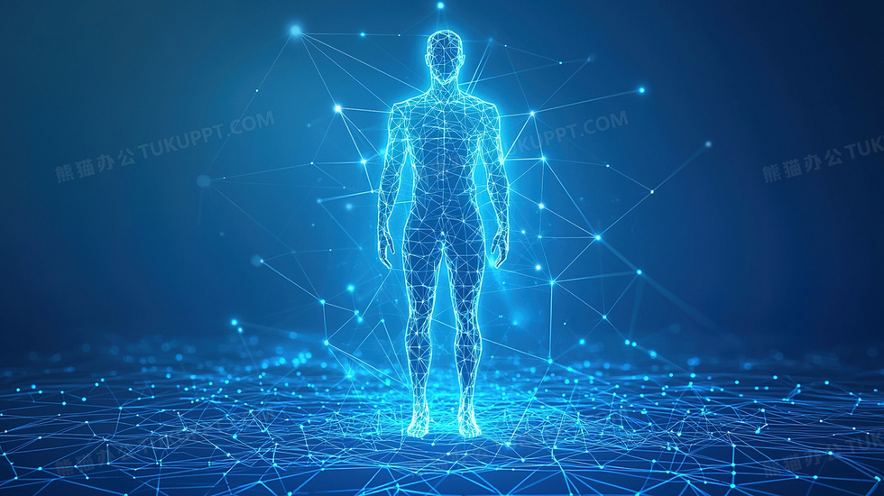 本作品内容为蓝色科技互联网连接人体模型背景, 格式为 jpg, 大小3 MB, 图片尺寸为2912 x 1632, 作品中背景图片无需修改, 源文件无水印,可以直接使用, 欢迎使用熊猫办公。 如认为平台内容涉嫌侵权,可通过邮件:tousu@tukuppt.com提出书面通知,我们将及时处理。
