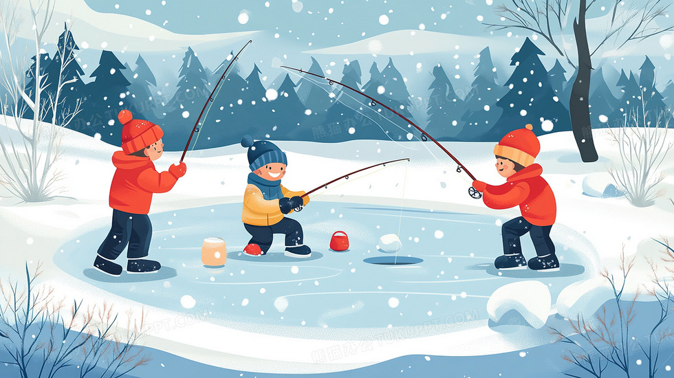 本作品内容为冬天孩子在湖面冰钓插画, 格式为 jpg, 大小3 MB, 图片尺寸为2912 x 1632, 源文件无水印, 欢迎使用熊猫办公。 如认为平台内容涉嫌侵权,可通过邮件:tousu@tukuppt.com提出书面通知,我们将及时处理。